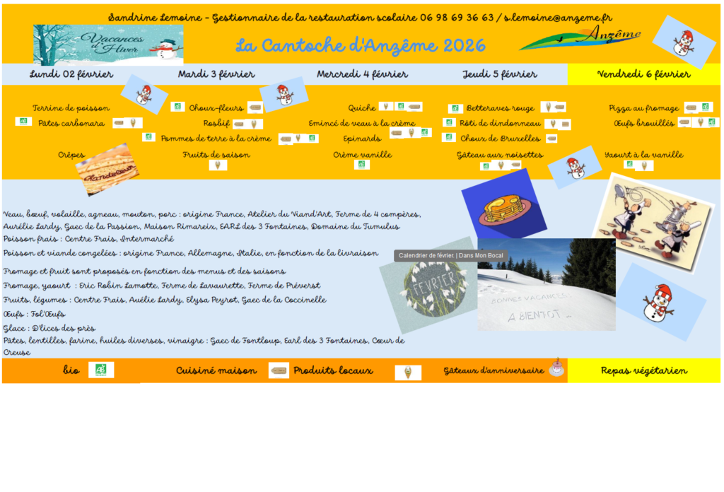 - Menus du 02 au 06 fevrier 2026