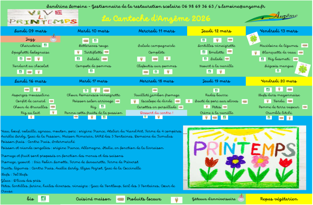 - Menus du 09 au 20 mars 2026